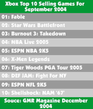 Here are September 2004's Best Selling Games as reported in December GMR Magazine. Source: GMR Magazine: December 2004 Issue