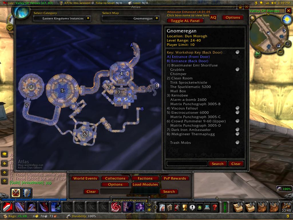 11. Once you've clicked okay, enter the world. You will now have perfectly ok mods that you wont get banned for. This makes wow much easier to play with things like how long till you level, and how much money you have without opening your bag. Even how much durablity your armour has and how much it will cost to fix it!