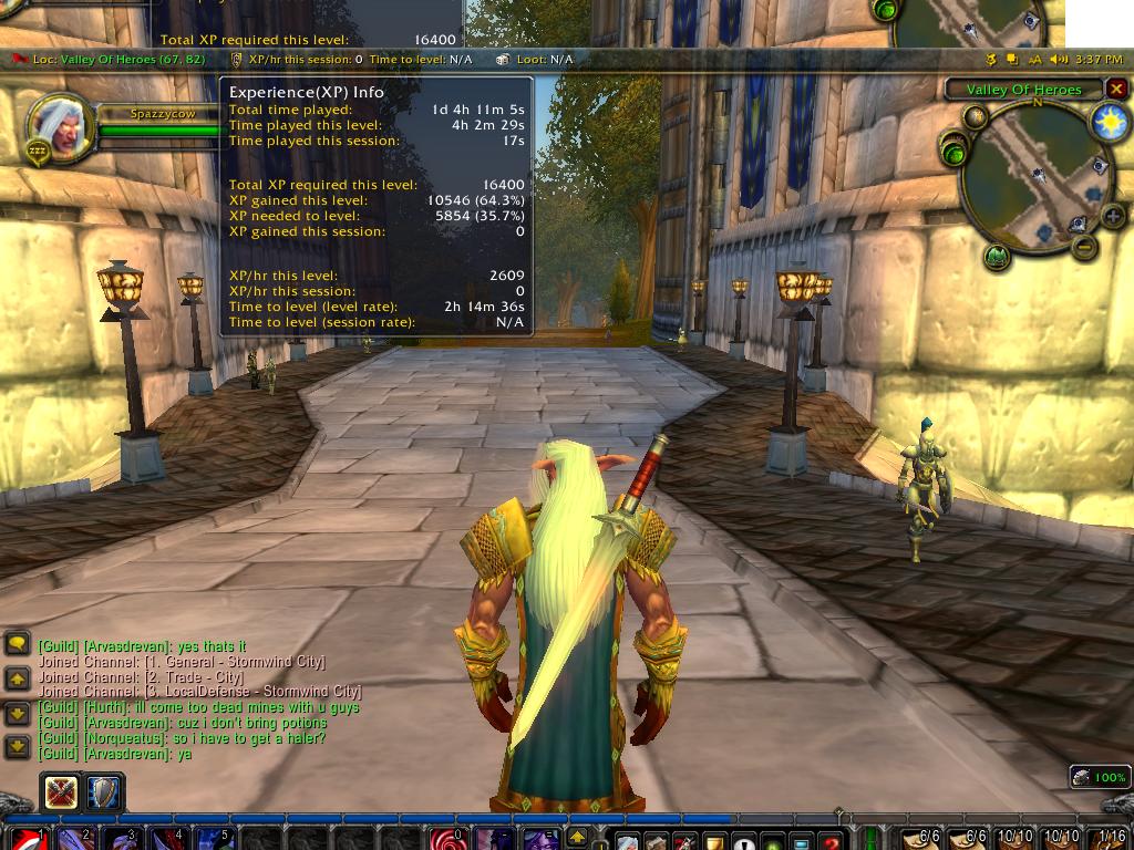11. Once you've clicked okay, enter the world. You will now have perfectly ok mods that you wont get banned for. This makes wow much easier to play with things like how long till you level, and how much money you have without opening your bag. Even how much durablity your armour has and how much it will cost to fix it!