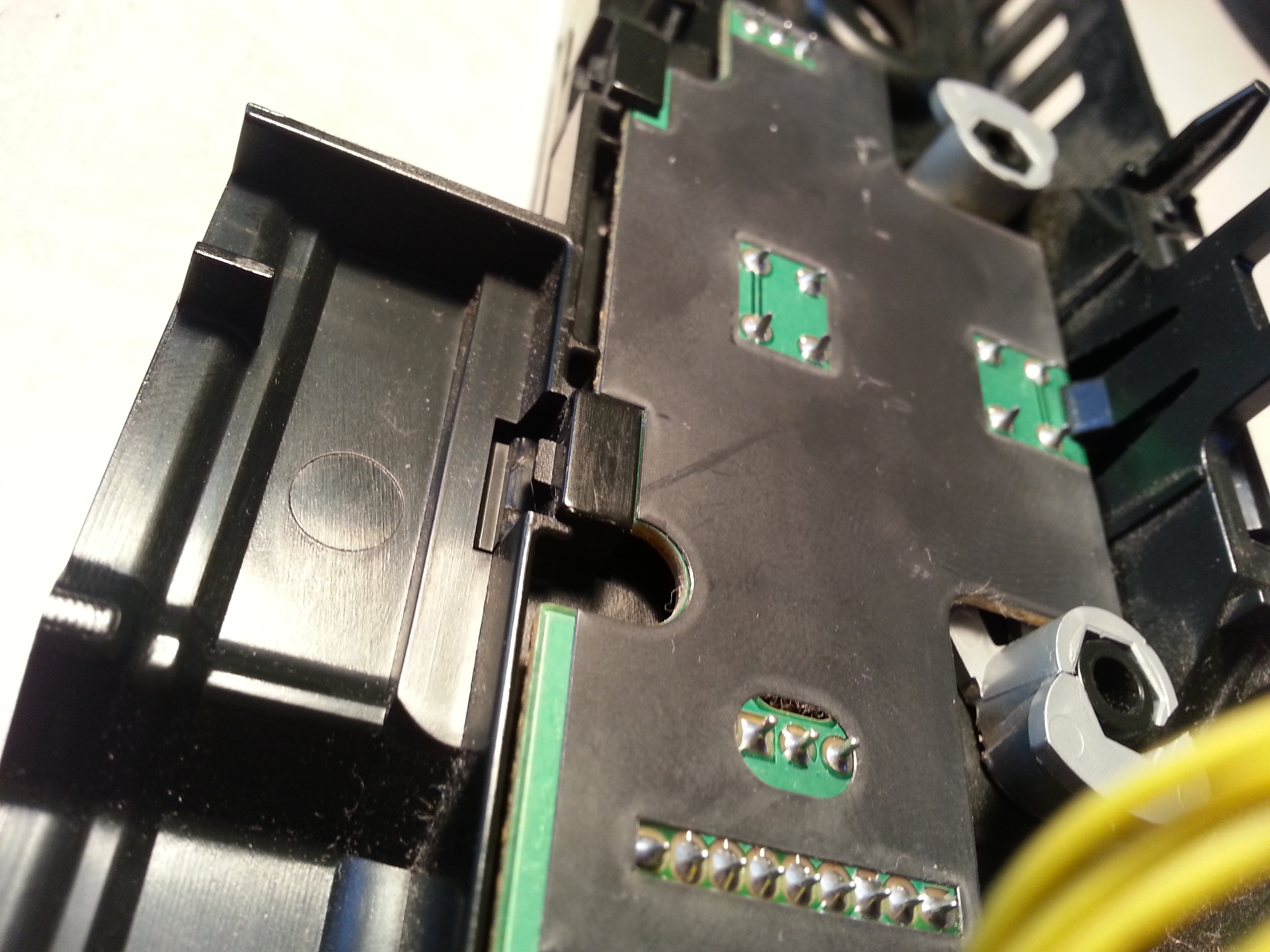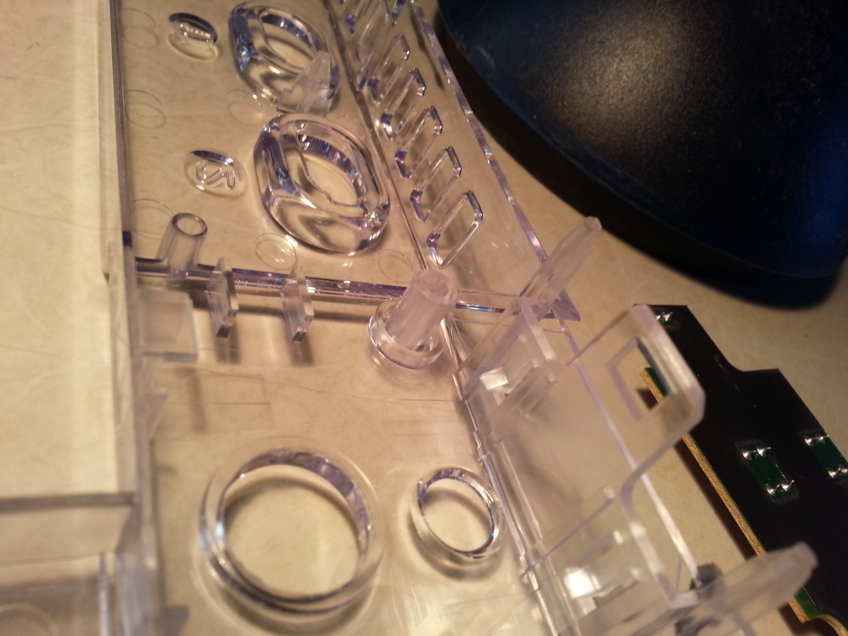 Power/eject pushbutton PCB doesn't seem to fit into clear faceplate.