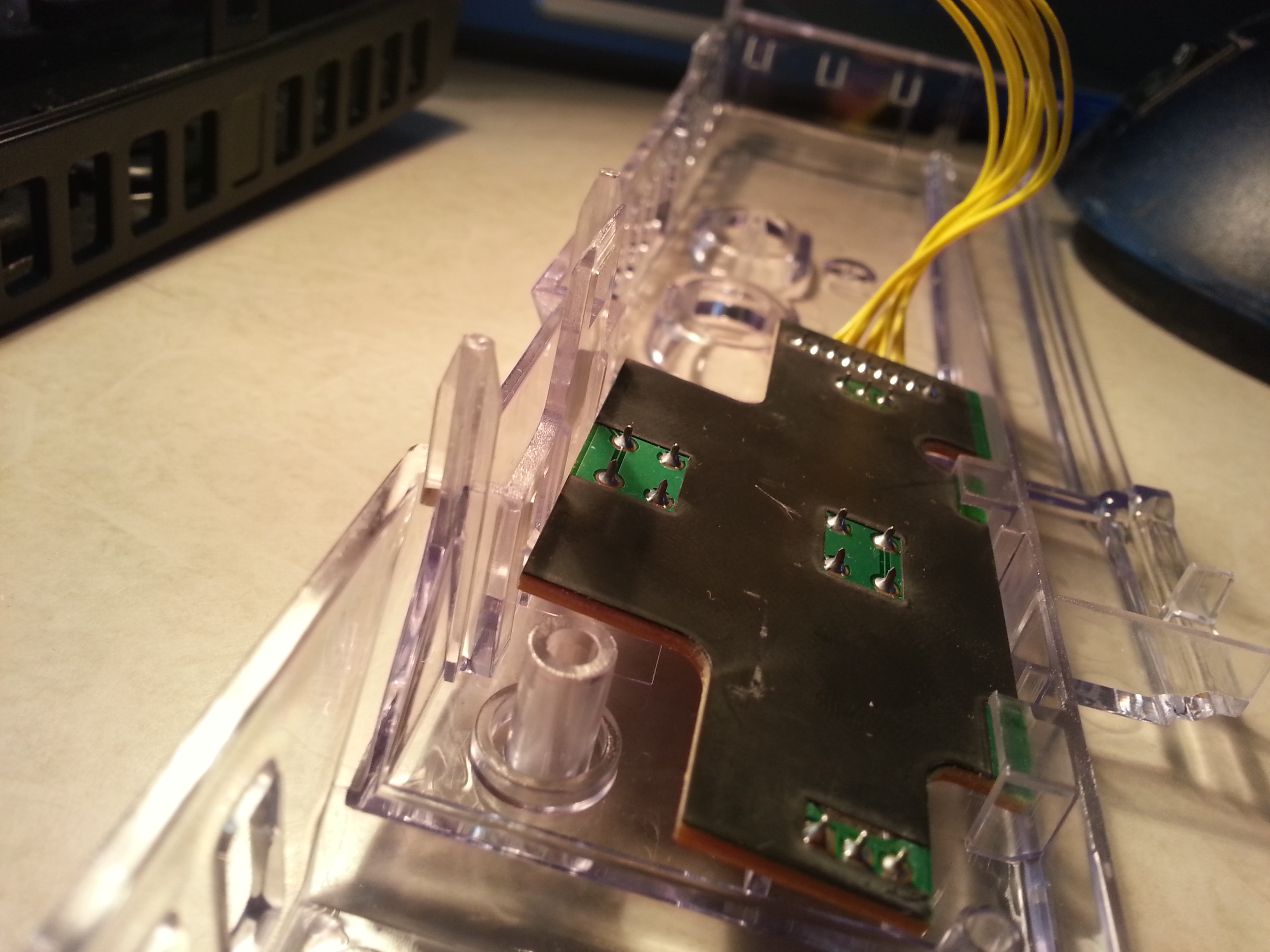 If I try to fit under the two prongs, the PCB sits on top of the tubes and obviously doesn't fit.