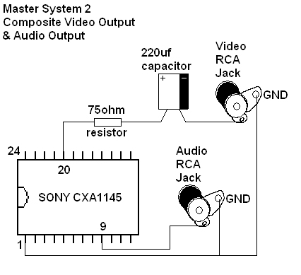 Sega Master System II (SMS2) - Composite Output - video and audio mods