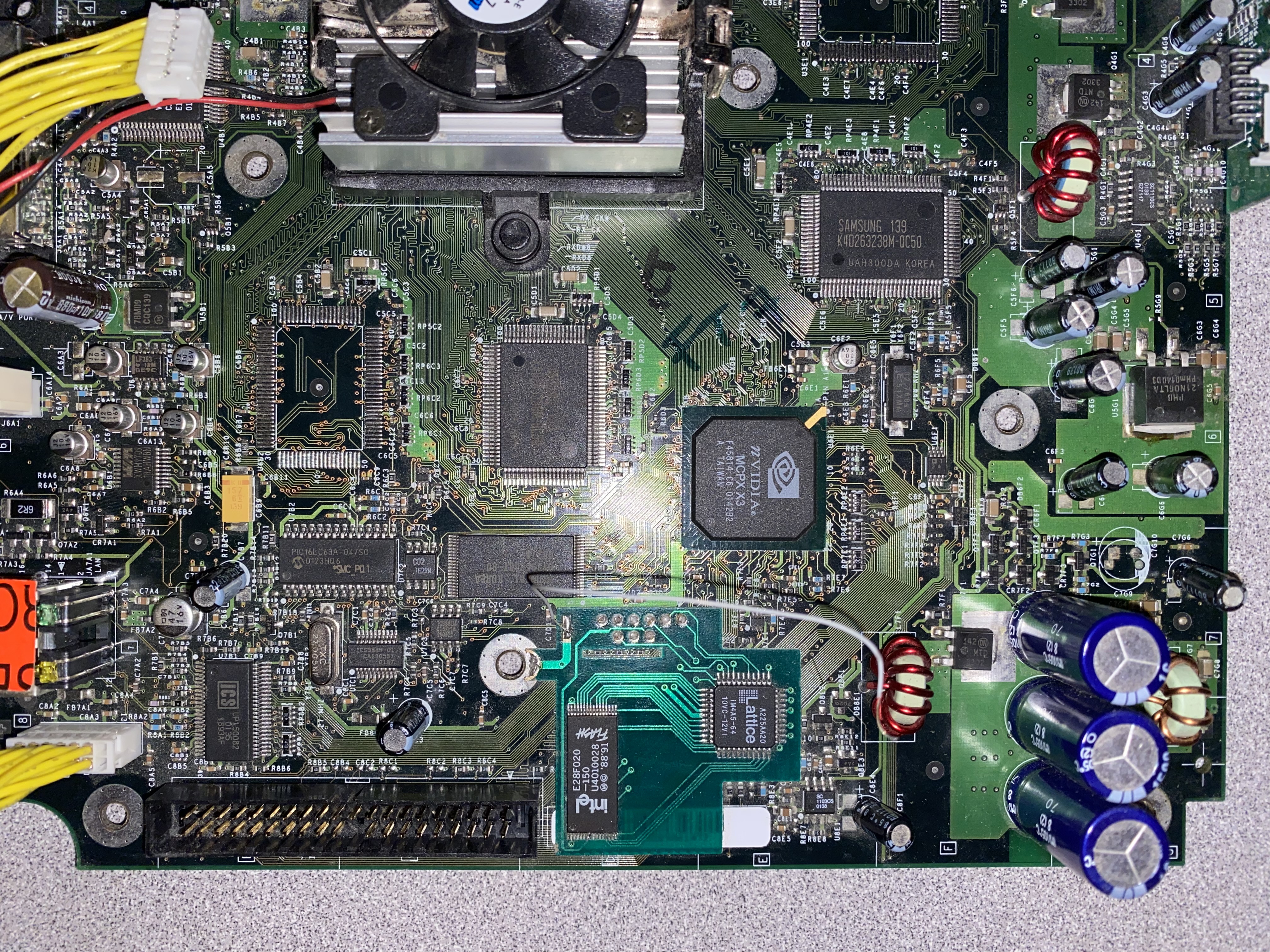 I was trying to troubleshoot why my Ethernet port stopped working, and I’ve never looked very closely at the inside when I’ve taken this thing apart in the past, but I realized a thin white jumper cable was disconnected from a second solder point (not sure where it goes) — and I noticed as well, a mod chip. Any help identifying what this is, and pointing me towards any documentation would be super helpful and appreciated!