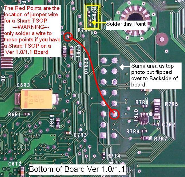 This is my first TSOP flash, one quick question...I have a v1.1 box I am flashing here and I am somewhat fuzzy on the solder points. I see two on the top of the board and two on the bottom. So I have to connect the two points at each spot just to each other and thats it right?