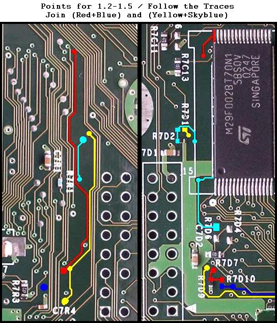 With reference to the last two pics, they show the same points as the first three pics but with alternative points to bridge, you dont need multiple wires from one colour to the other, just pick your preferred points and join them.