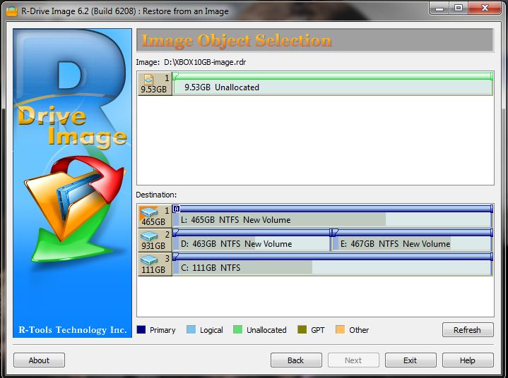 Select the image file and destination HDD (took me about 5 minutes to copy the image via USB to HDD)