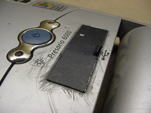i fabricated a door that will have a hinge so that it will swing freely. this compartment will also house the dpdt switch for the dual hdd mod.