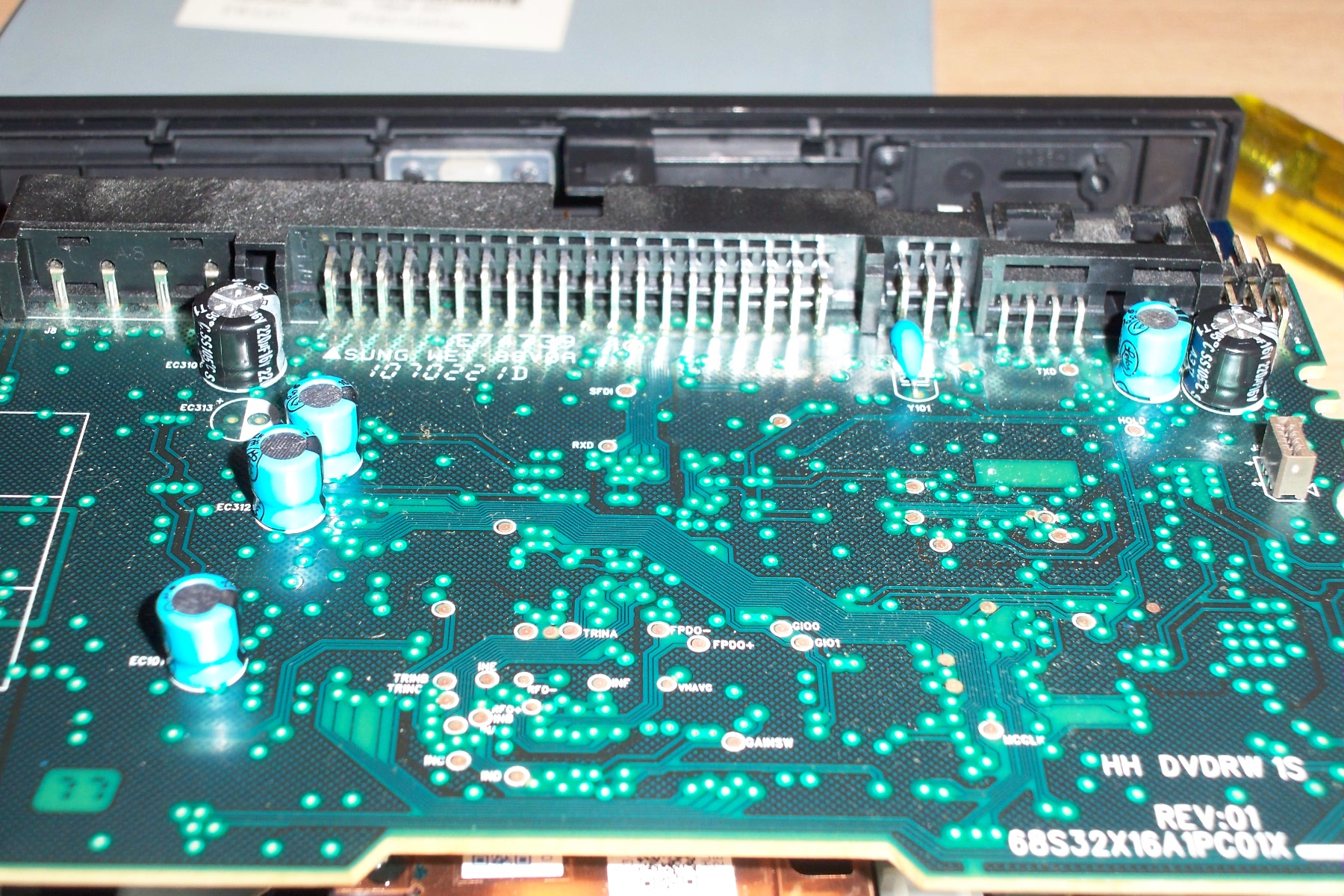 I've had a look at the tutorials on here, XS, and some archive of PSXBASE, which all say that I need to wire up several signals to the power connector for things to work. I've found a few of these on the DVD drive's board, but I can't find 'ready' and I'm not sure which is 'tray in', since there is TRINA, TRINB, TINC, etc, and a TYIN.