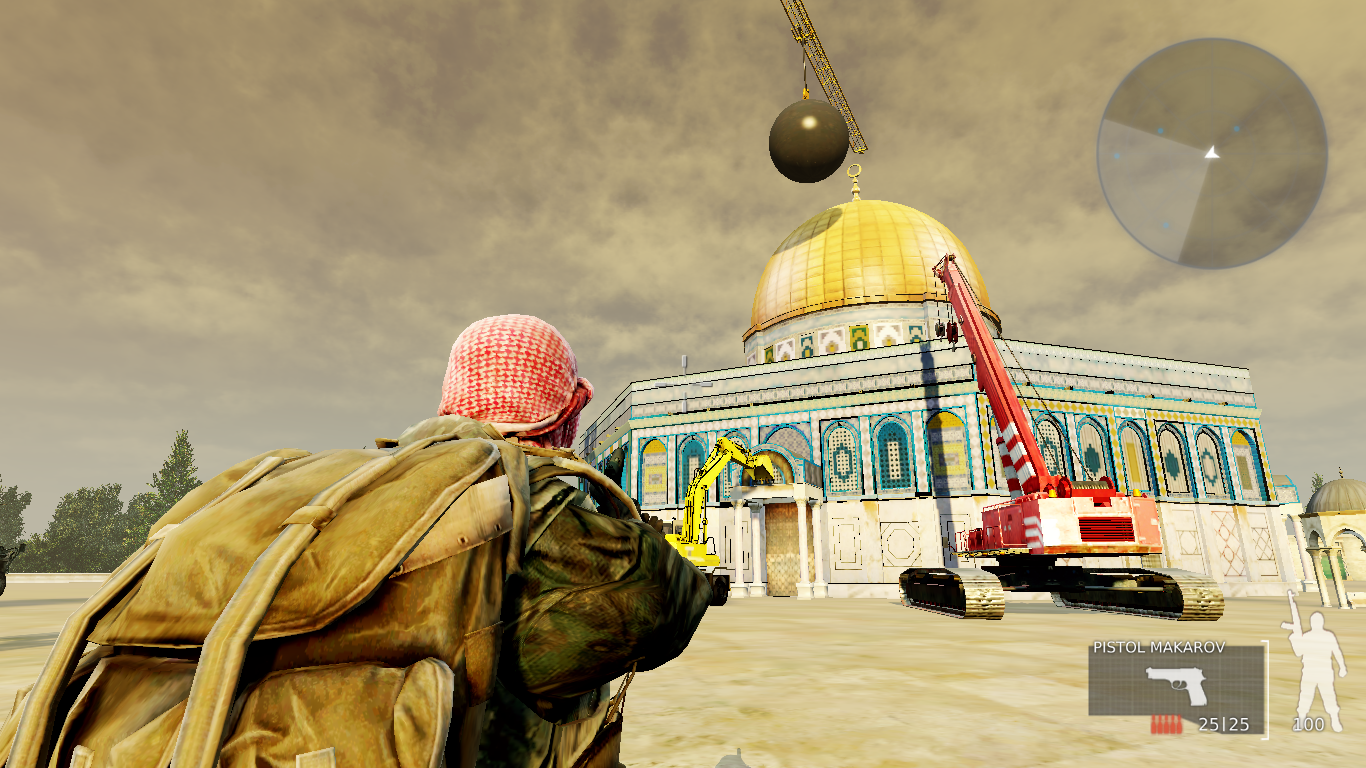DISCLAIMER: In this game, the player does not shoot Israeli civilians, women, children, elderly, only soldiers. Also in this game there are NO images of sexual content, illicit drugs, religious desecration, hate of speech against any group, ethnicity or religion, anti-Semitist propaganda against Jews, Nazi propaganda or boasting of any terrorist groups and / or other unlawful acts. This game only contains the virtual representation of the Palestinian Resistance Movement against the Israeli Military Occupation, which is officially recognized by the United Nations (UN). I even sent this project for Brazillian's Government Justice Department, Age Rating Sector (kinda Brazillian ESRB) for their approval and age rating. This project was approved, now I am just waiting for the Age Rating Information of my game which will be available very soon on their website (http://portal.mj.gov.br/ClassificacaoIndicativa/jsps/ConsultarJogoForm.do)