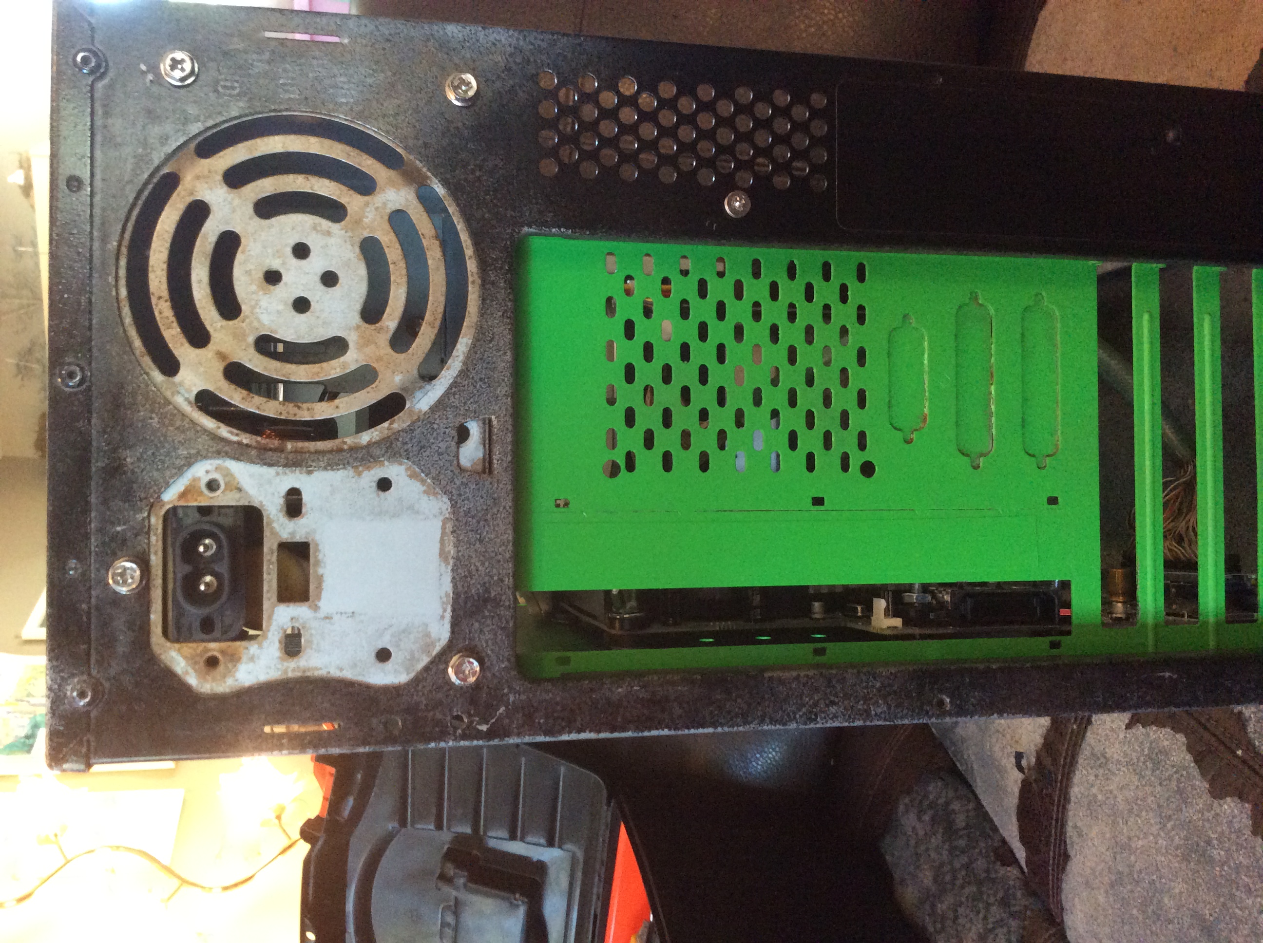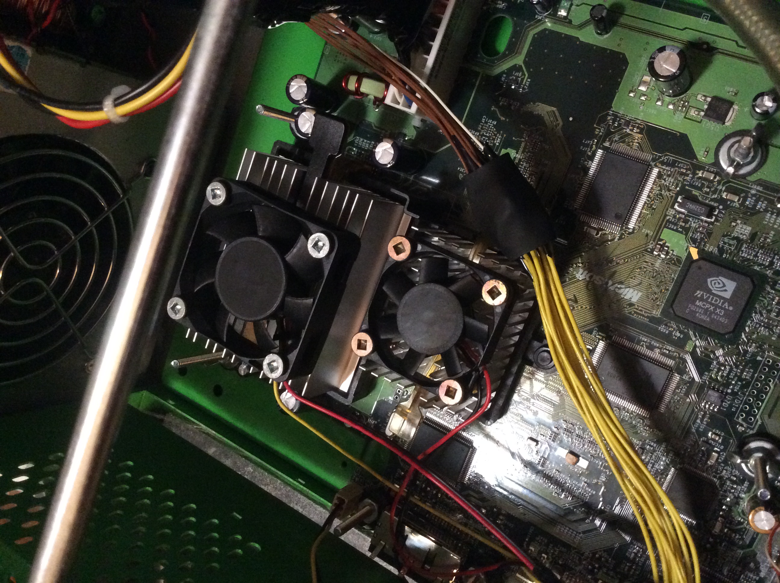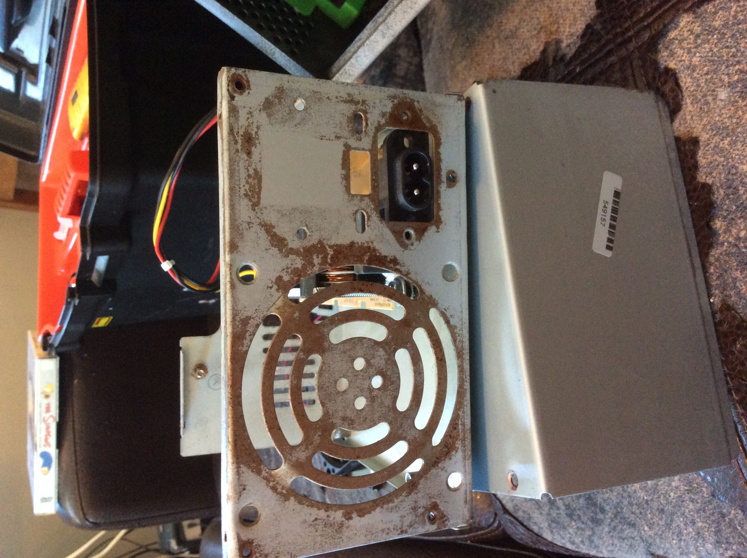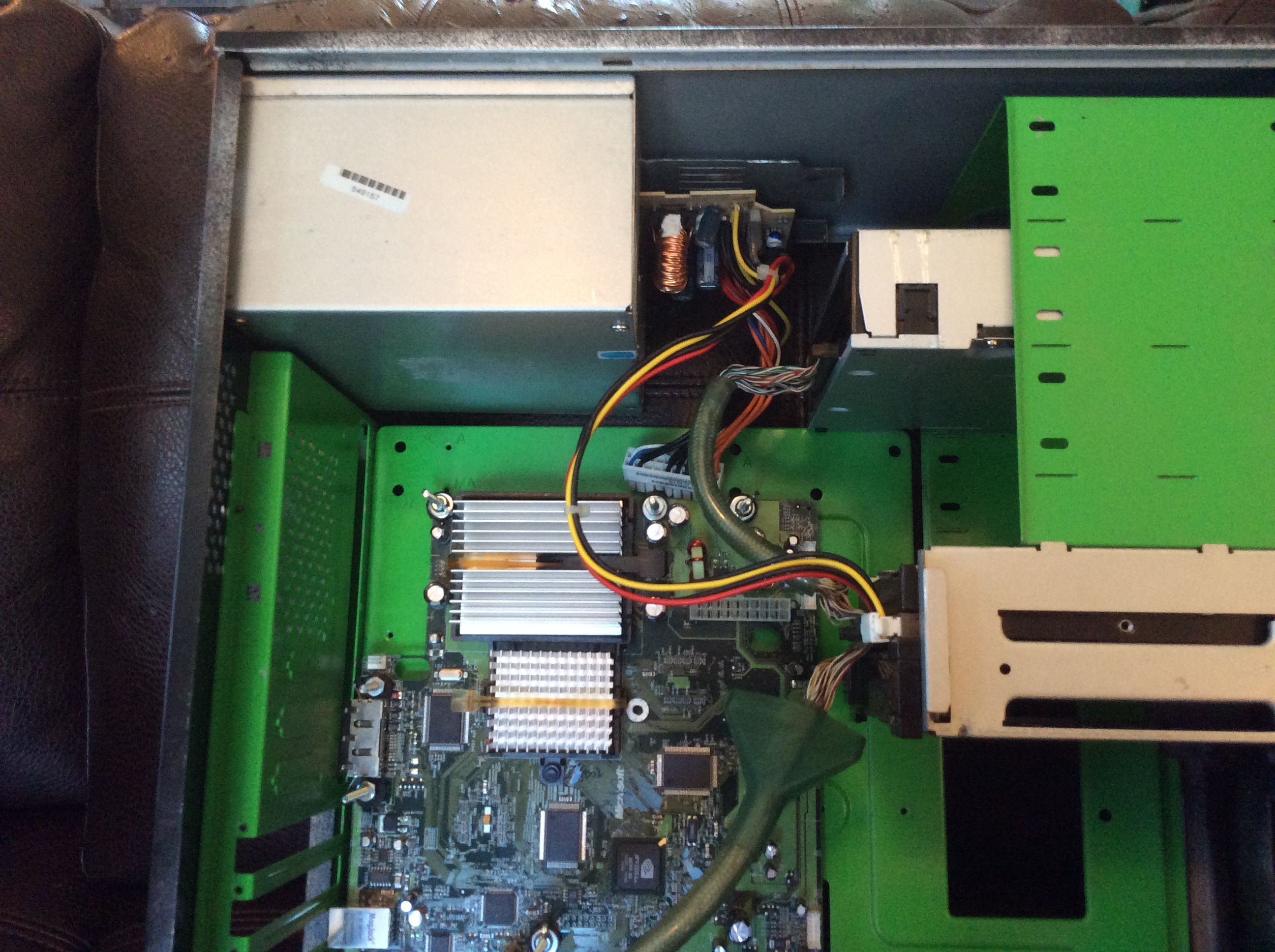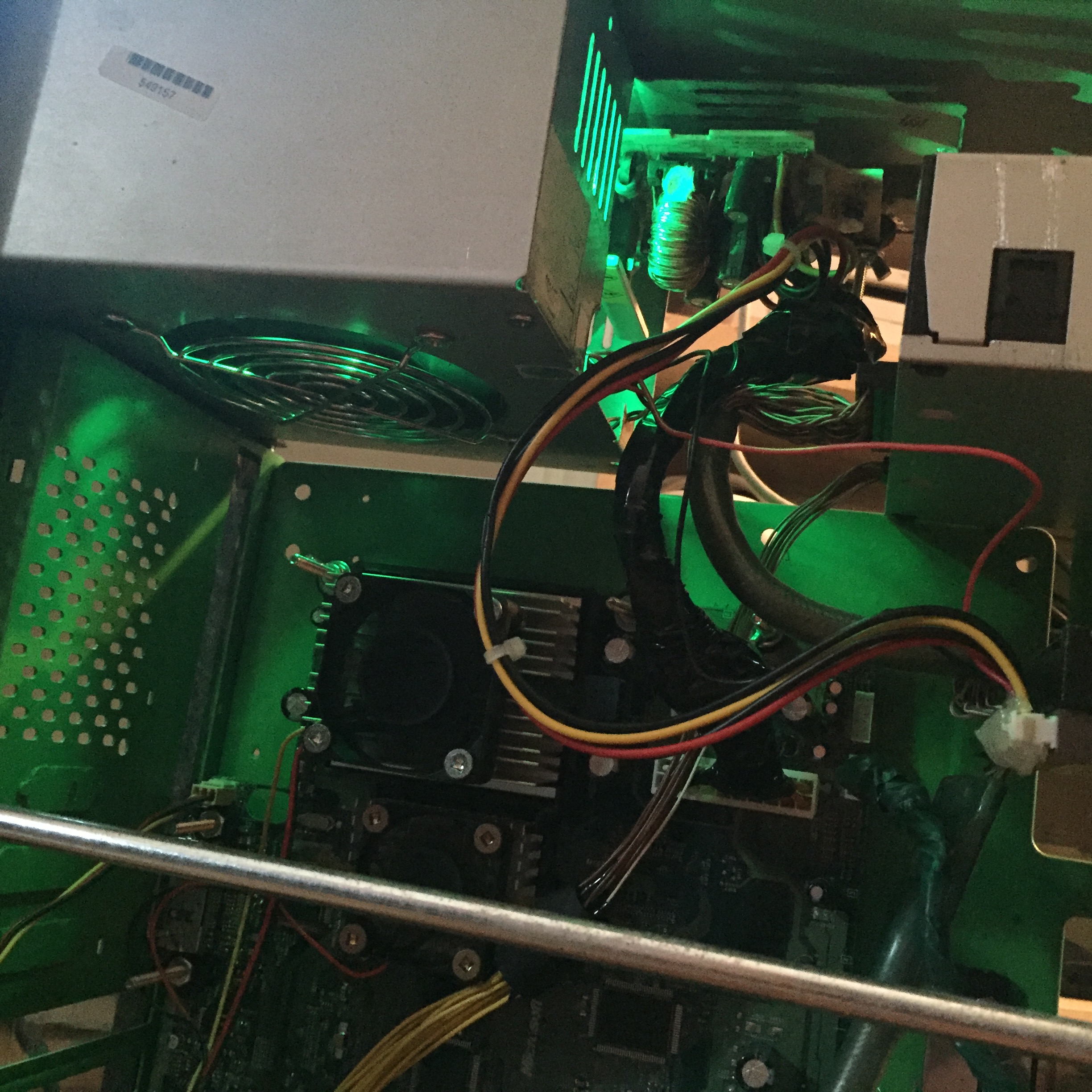 Xbox psu installed inside PC case along side with motherboard, hdd, and dvd drive