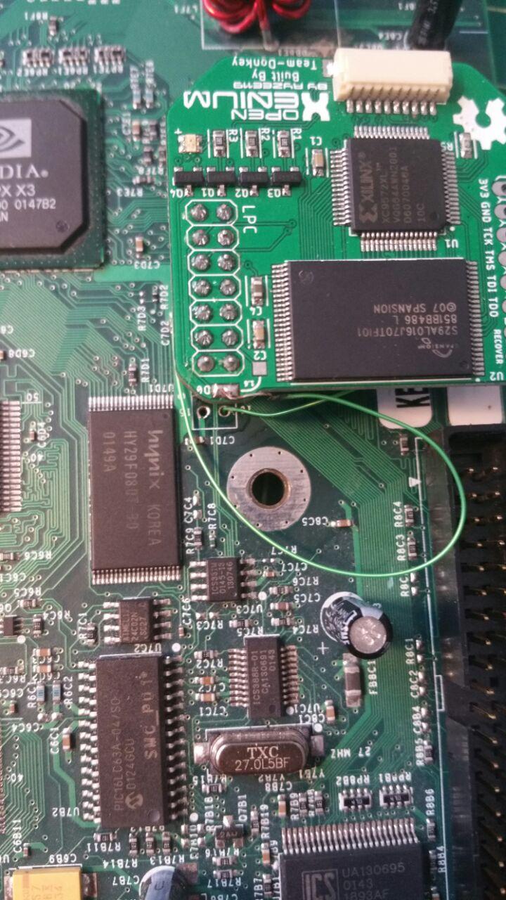 OpenXenium modchip installed with d0 wire